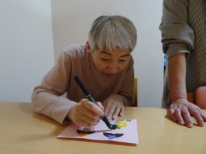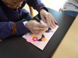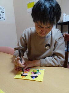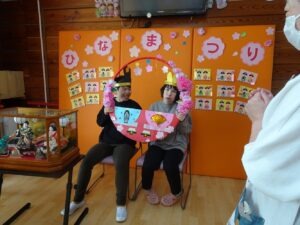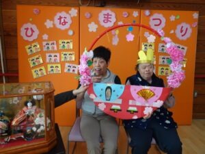 2026.03.17 3月イベント レクリエーション 2026/3/3ひな祭りイベントを行いました壁面装飾を制作中🖊お内裏様、お雛様の目と口を描いてもらいシールで飾り付けしてもらいました🎎皆さんに描いてもらったものを壁面を飾り付けし、写真撮影を行いました📷ひな祭りの歌を聴きながらひな祭り仕様のケーキ🍰と甘酒でお祝いしました😉